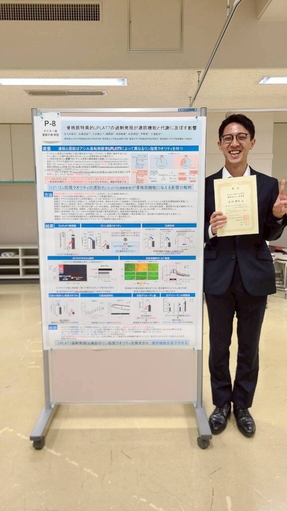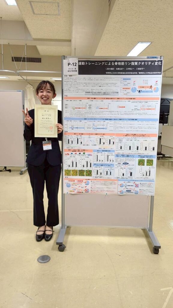 10月17-18日に静岡県立大学で開催された、第72回 中部日本生理学会(静岡)にて佐藤助教が口頭発表、大学院生がポスター発表を行いました。佐藤助教は中部奨励賞、修士2年の鈴木さん、修士1年の大内くんがポスター賞を受賞しました。
